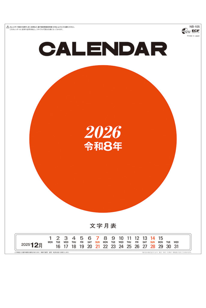 機能性と実用性を兼ね備えた、コンパクトでシンプルなカレンダー。旧暦・九星・六曜・六十干支・二十四節気・行事など、生活情報満載のカレンダーです。名入れ色は、基本7色(朱・藍・緑・赤・紺・濃紺・黒)より選べます。