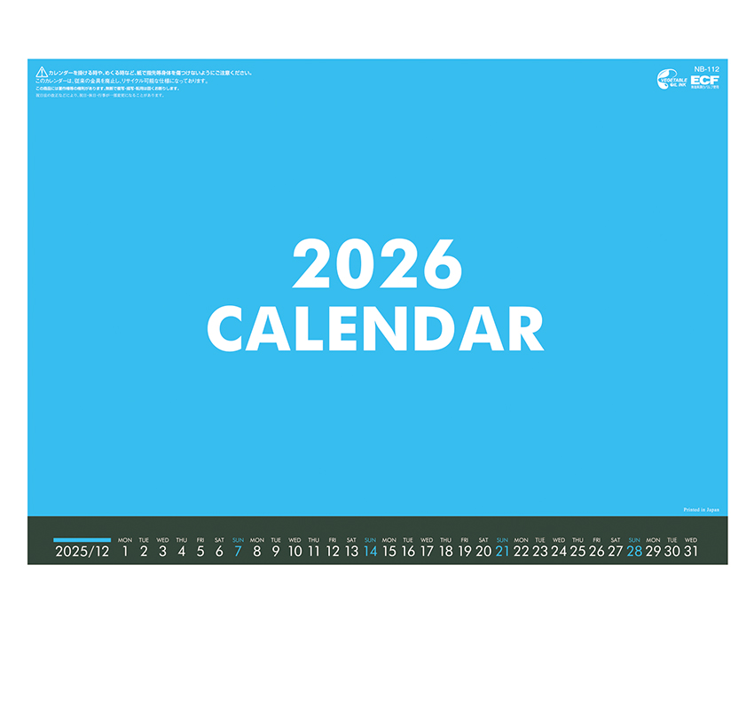 大きな数字で、実用性にこだわりました。祝祭日・九星・六曜も入っているのに、コンパクトな角型仕上げ。価格もお手頃です。名入れ色は、基本7色(濃紺・黒)より選べます。