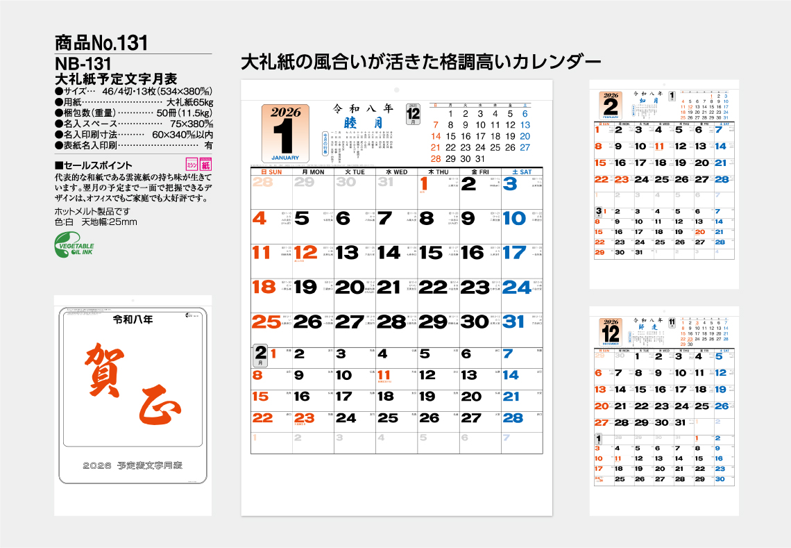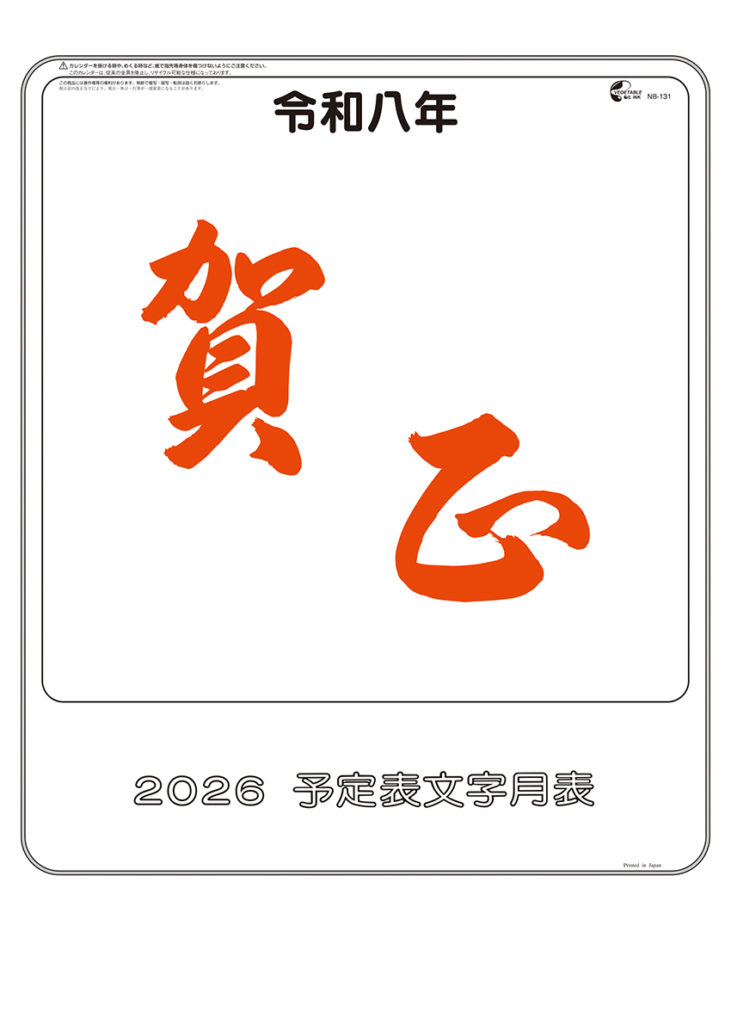 代表的な和紙である雲流紙の持ち味が生きています。翌月の予定まで一面で把握できるデザインは、オフィスでもご家庭でも大好評です。。名入れ色は、基本7色(濃紺・黒)より選べます。
