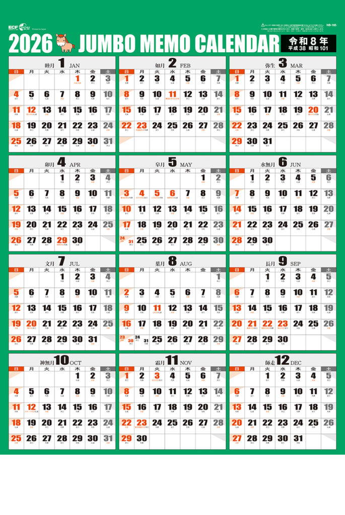 大きな数字で、遠くからも見えやすく、広いメモスペースは予定管理に最適です。実用性と機能性を兼ね備えたビックサイズの文字月表。ご家庭でもオフィスでも人気の逸品です。名入れ色は、基本7色(濃紺・黒)より選べます。